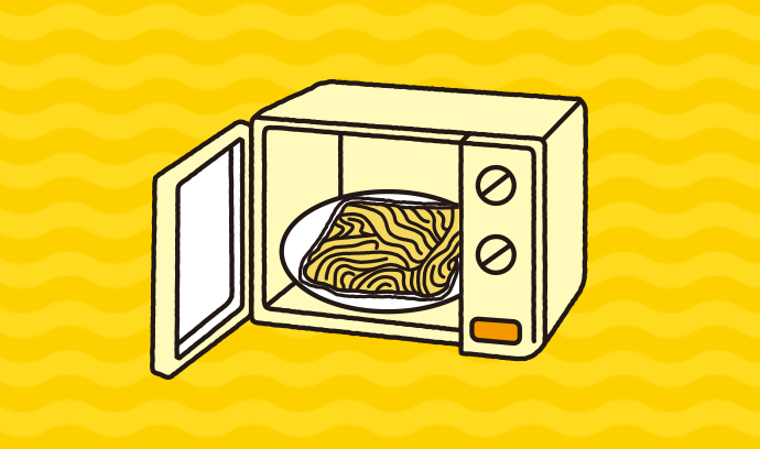 焼そばを冷蔵庫から取り出し、電子レンジで30秒温める。温めると短時間でも簡単にほぐれるようになります。